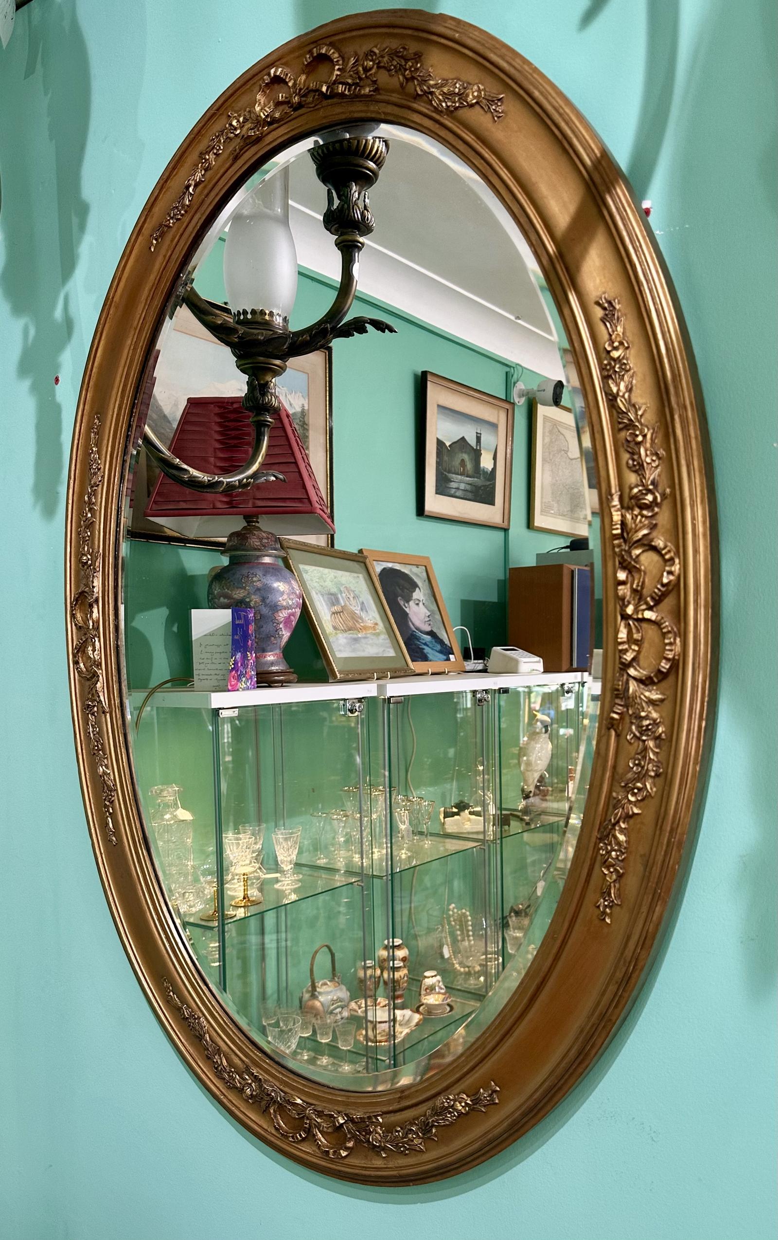 Victorian Neoclassical Revival Gilt Oval Wall Mirror.